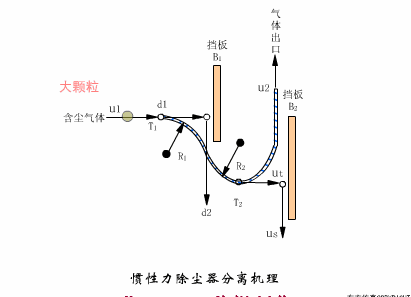 慣性除塵設備是使含塵氣體與擋板撞擊或者急劇改變氣流方向,利用慣性力分離并捕集粉塵的除塵設備。慣性除塵設備亦稱惰性除塵器。由于運動氣流中塵粒與氣體具有不同的慣性力,含塵氣體急轉彎或者與某種障礙物碰撞時,塵粒的運動軌跡將分離出來使氣體得以凈化的設備稱為慣性除塵設備或惰性除塵器。
