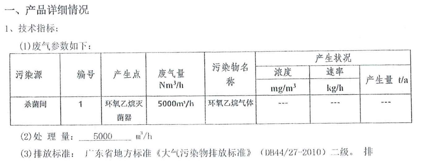 廣東泰寶醫(yī)療科技股份有限公司主要從事醫(yī)療器械和藥品相關(guān)的行業(yè),在生產(chǎn)的過(guò)程當(dāng)中會(huì)產(chǎn)生環(huán)氧乙烷氣體。