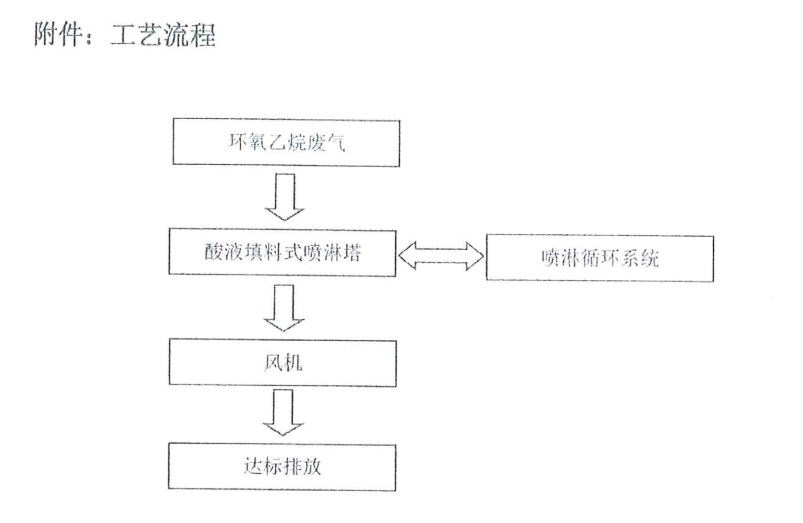 廢氣經(jīng)過(guò)噴淋塔,把灰塵和顆粒狀的給排除掉,以免堵塞設(shè)備造成損耗。然后其他的廢氣經(jīng)過(guò)催化的化學(xué)作用下,把環(huán)氧乙烷給消化掉。剩余的干凈廢氣再經(jīng)過(guò)風(fēng)機(jī)排放出去。
